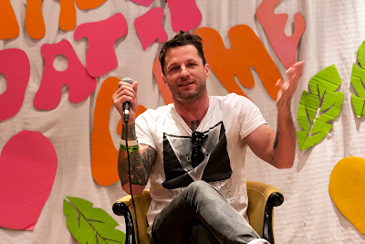 Next up, a real treat: Kyp Malone from TV On The Radio in an emotional and powerful solo set, with backing vocals by Heidi Ferrell. "This one is for...cameras," Malone drily joked as his looked at all the media pointed his way, including me. I hear ya, Kyp...if I could be invisible, I would be. I sat cross-legged directly at his feet, feeling lucky to be hearing his music like this.