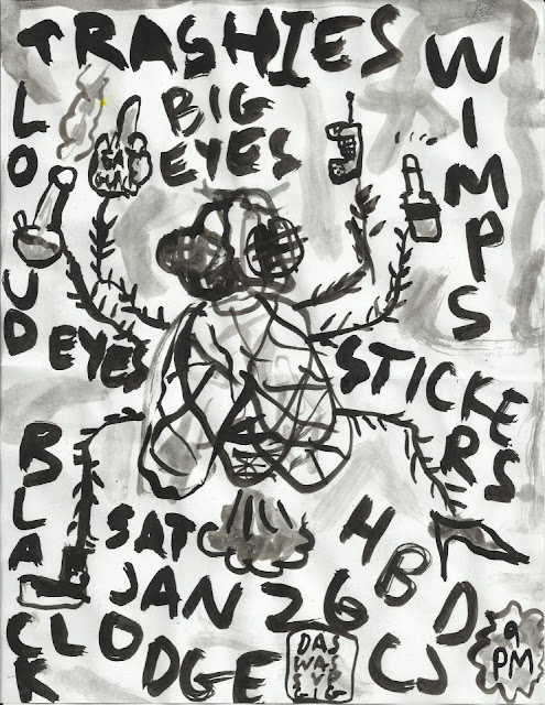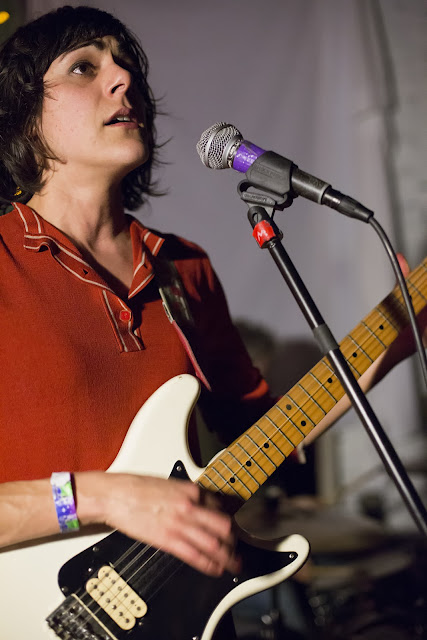 The Black Lodge is something like a cross between a haunted house and Andy Warhol's Factory, a strange basement rec room, and a punk cattle corral. The entryway where the merch table was is ALL LIGHTS and then the performance space is NO LIGHTS AT ALL, save for a single, merciless bulb in a silver industrial lamp. The turnout was excellent, and the floor packed. The band (made up of Rachel Ratner on guitar and vocals, Matt Nyce on bass and vocals, and Dave Ramm on drums) headlined the night, which also included Trashies, Stickers, Loud Eyes, and Big Eyes (I missed everyone else because I was next door at the Lo-Fi Performance Space yabbering away with friends and drinking tall PBR's, lo siento). Anyway, everyone had a blast, everyone left happy into the chilly, dry night, and I only had like, half of my pants covered in beer this time! WIN! Anyway, enjoy the photos, click to enlarge, see more HERE on Flickr, and go buy "Repeat" because it's fun and you like fun and I like fun, so there!