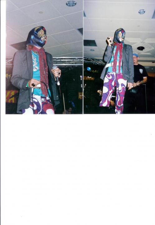 After the Kim Fowley incident in Las Vegas , Sky Saxon appeard on stage , disguised as Mil Mascaras.