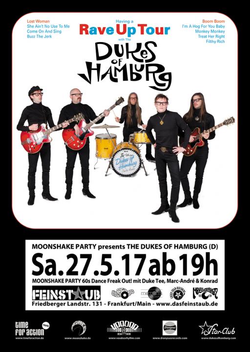 MOONSHAKE PARTY presents THE DUKES OF HAMBURG (D) Deutschlands Beatband Nr. 1 & MOONSHAKE PARTY mit Duke Tee, Marc-André & Konrad am Samstag 27.5.2017 ab 19h im FEINSTAUB/Ffm https://www.facebook.com/events/1932374783709073