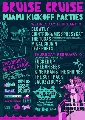Continuing on with fab Bruise Cruise coverage from PART ONE, we find ourselves back again at The Stage in Miami for the second night of Kickoff Party shows, and the lineup is KILLAH KOOL: Jacuzzi Boys, The Soft Pack, King Khan & The Shrines, Thee Oh Sees, and Fucked Up. Ohboyohboyohboy!!