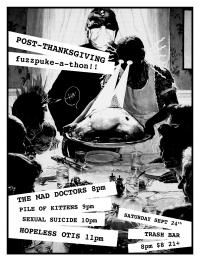 8 PM - The Mad Doctors 9 PM - Pile of Kittens 10 PM - Sexual Suicide 11 PM - Hopeless Otis