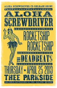 A huge night for Aloha Screwdriver as we debut our second CD, "The Haunted Planet". And we're lucky enough to have two of our favorite bands supporting us: Rocketship Rocketship https://www.facebook.com/pages/RocketShip-Rocketship/253462681330815 The Deadbeats https://www.facebook.com/TheDeadbeatsSurf/ Price is just $5. Show starts at 9pm. 21+