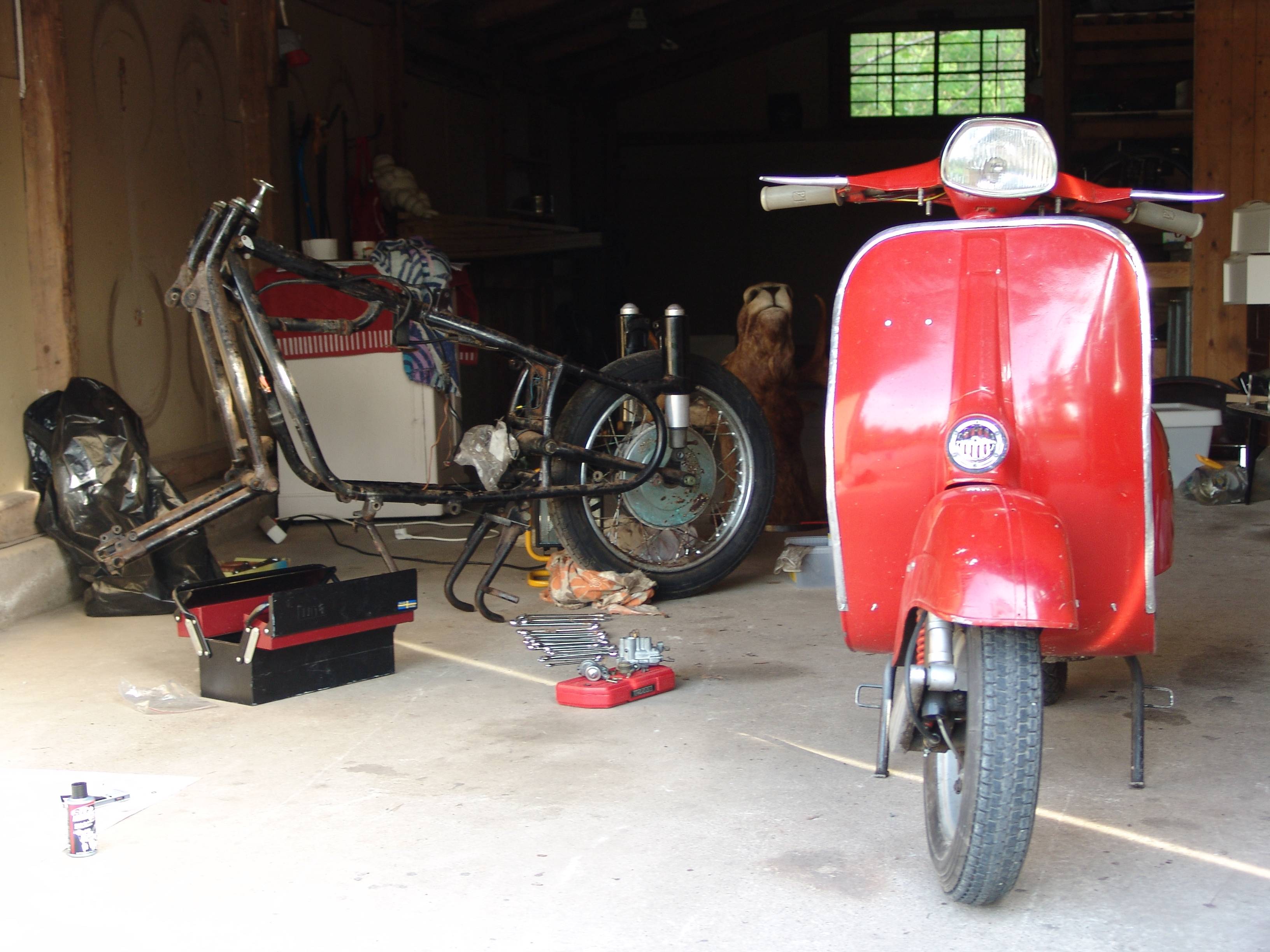 Hey, cool... man, it's got its pros. I really need to get me a electric started bike. The R90 sounds like a good choice.  Here's the Vespa GL '64 & one of the BMW in stripped shape... do not look much to the world right now.